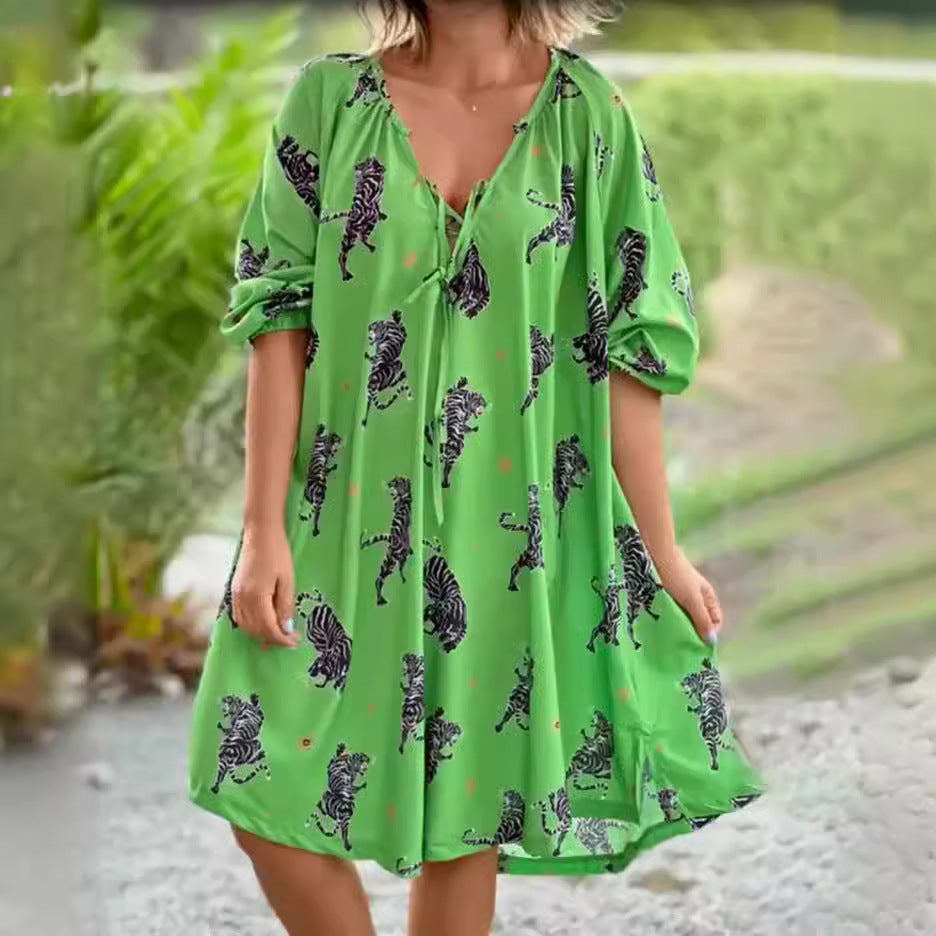 Print V-neck Casual Dress