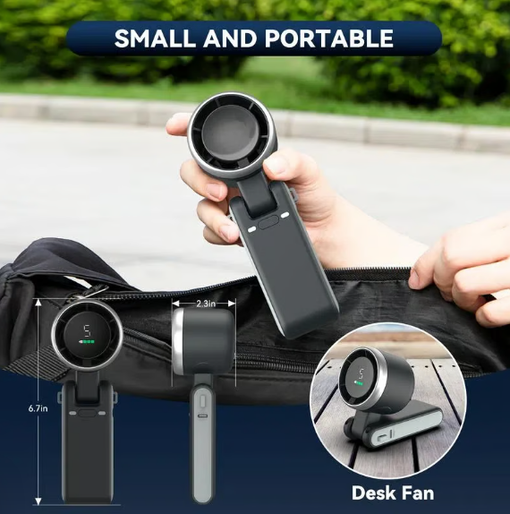 •🌟 Unique Design ✨ The ultra-compact folding design and lightweight weight of just 192g make it easy to store in your bag or backpack —no more bulky fans! 💼❄️ Plus, with the anti-lost lanyard, you can take this portable turbo fan anywhere and stay cool all day long! 🌬️🔥