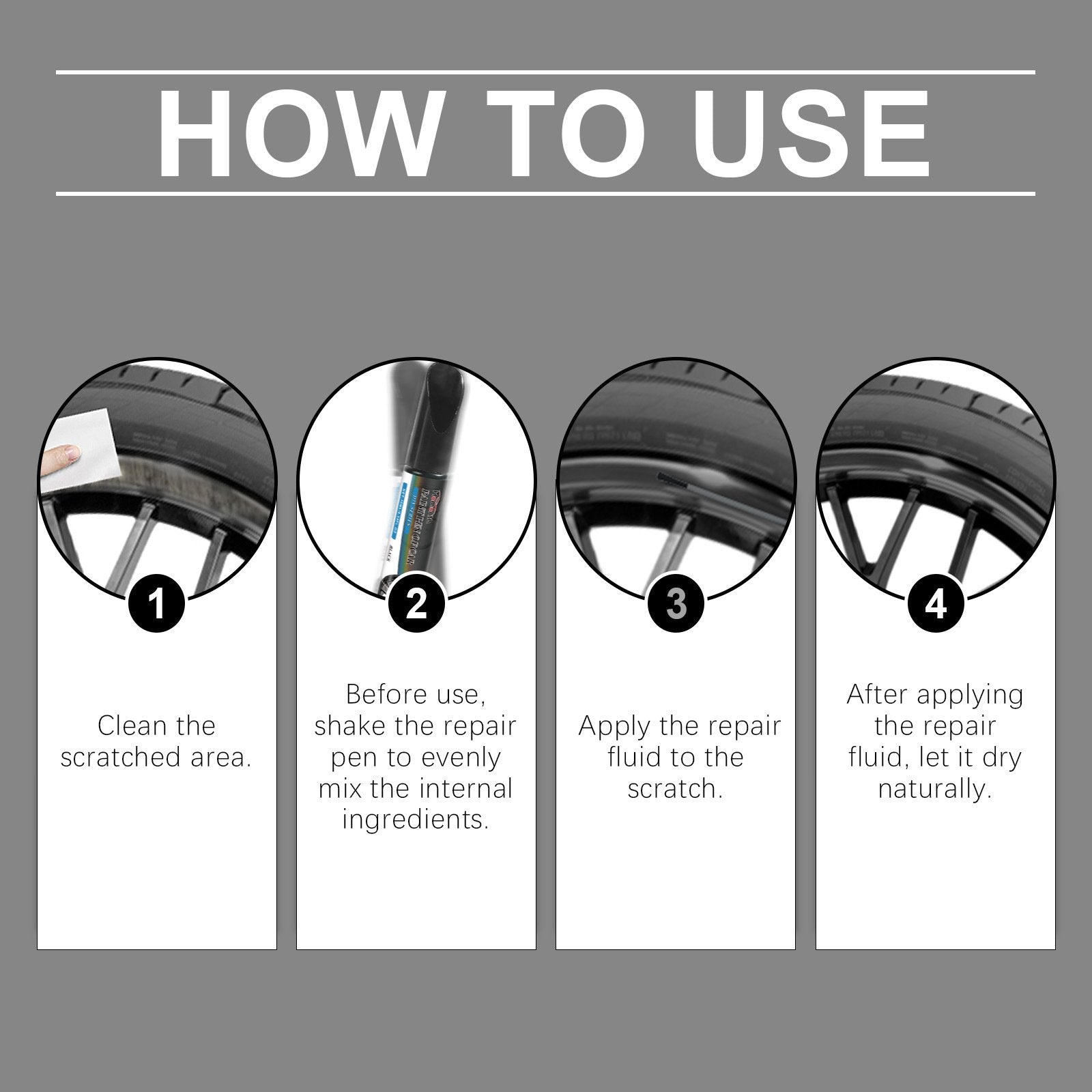 - [Easy to Operate] Clean and remove surface grease, then shake to mix thoroughly, according to the depth of damage, use multiple layers of paint to repair minor scratches, and it will take only 10 minutes to dry,No need to remove the wheel.