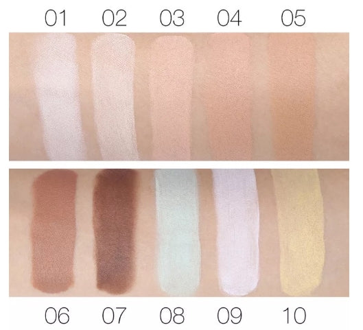 Color: 01# Beige (Concealer), 02# Light Nude (Concealer), 03# Deep Nude (Concealer), 04# Wheat (Concealer), 05# Light Coffee (Contour), 06# Dark Coffee (Contour), 07# Green (Redness Correction), 08# Purple (Yellow Tone Correction), 09# Yellow (Dark Circle Coverage), 10# Black (Contour + Cosplay), 11# Orange (Dark Circle Coverage)