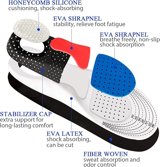- Breathable and Comfortable: The honeycomb shape shoe insole have good air permeability. Mesh fabric and foam's strong adsorption reduces odor and keeps your feet fresh and comfortable.