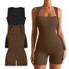 🔥HOT SALE 49% OFF🔥Womens Ribbed Square Neck Stretch Shorts Jumpsuit Rompers